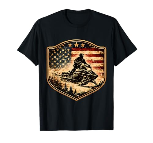 Snowmobile USA Flag Snow Sled Patriotic Snowmobiling America T-Shirt