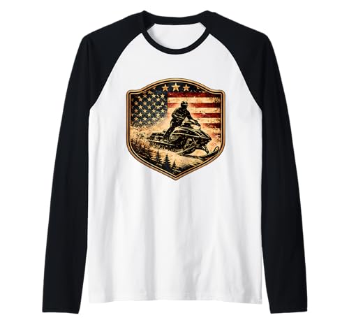 Snowmobile USA Flag Snow Sled Patriotic Snowmobiling America Raglan Baseball Tee