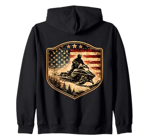 Snowmobile USA Flag Snow Sled Patriotic Snowmobiling America Zip Hoodie