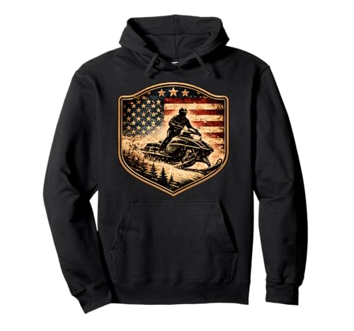 Snowmobile USA Flag Snow Sled Patriotic Snowmobiling America Pullover Hoodie