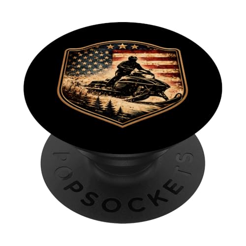Snowmobile USA Flag Snow Sled Patriotic Snowmobiling America PopSockets Adhesive PopGrip