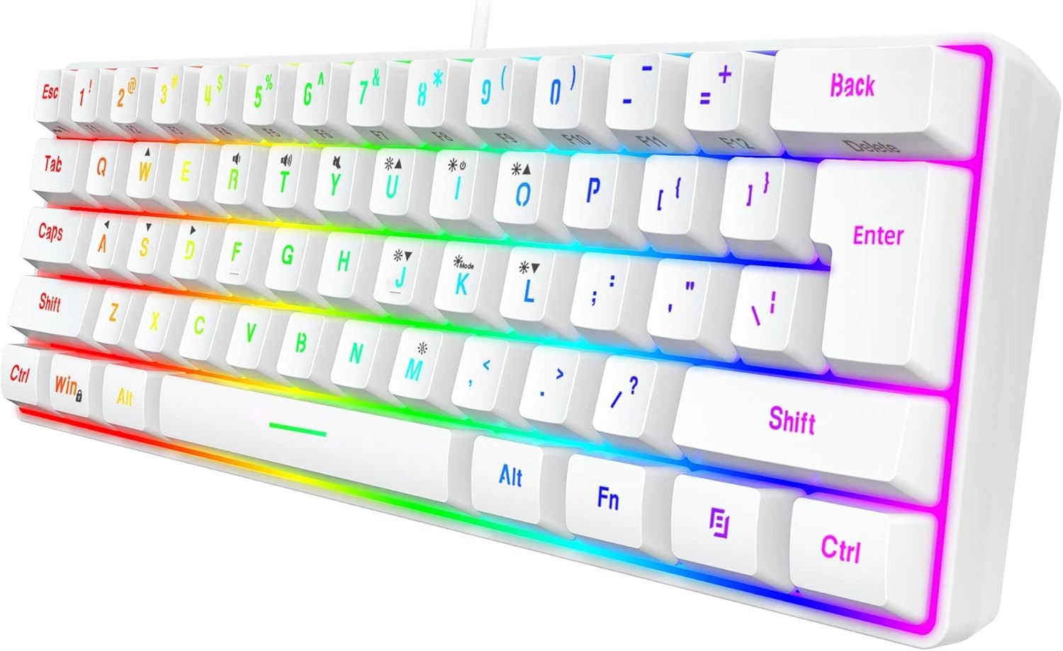 Snpurdiri 60% All-White Gaming Keyboard, RGB Backlit Ultra-Compact Mechanical Feel Keyboard | Sleek Minimalist Design for PC & Mac | UK Compatible ...