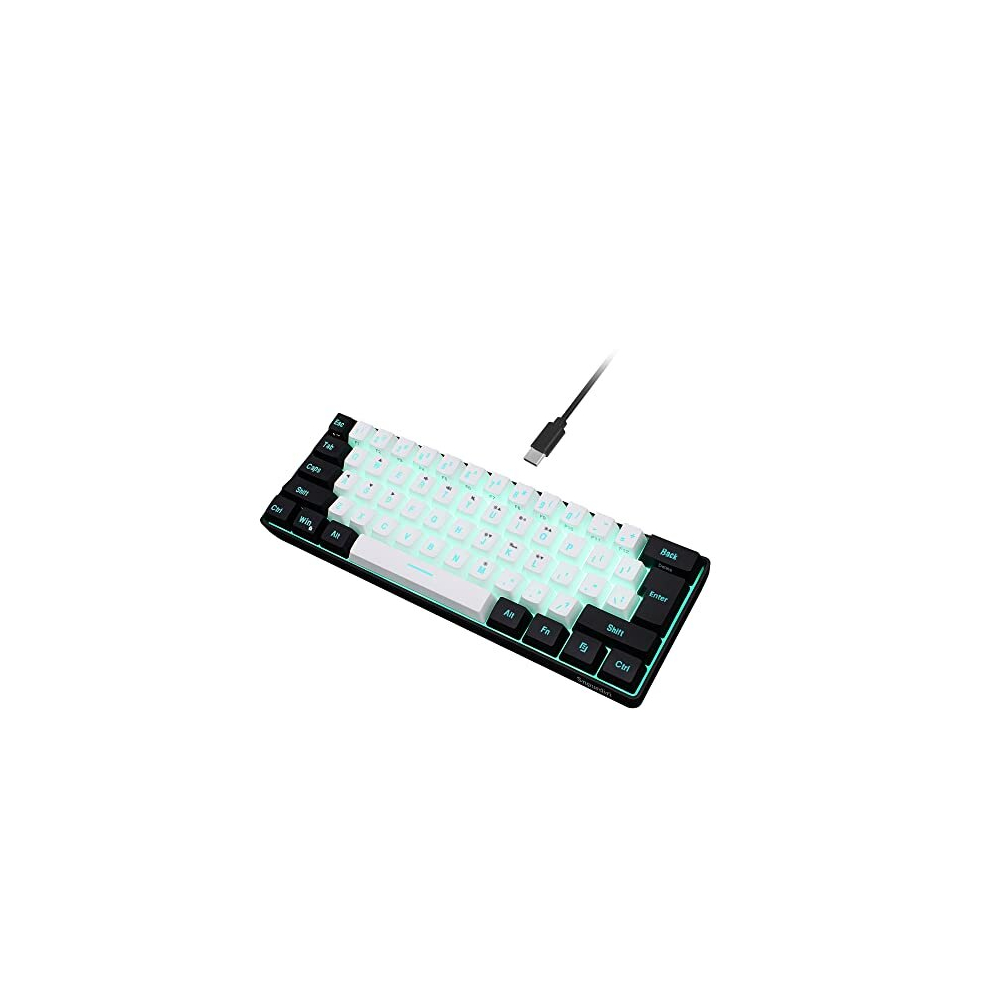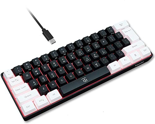 Snpurdiri 60% Wired Gaming Keyboard, Mechanical Feel Small Mini Keyboard, Portable Compact RGB Keyboard for PC, Mac, Office, Gaming (61 Keys, Black and White)