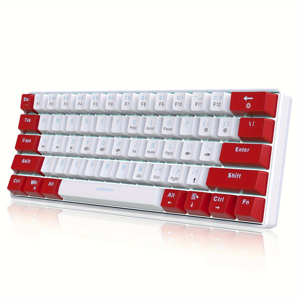 Snpurdiri 61 keys mechanical wired 60% Mechanical Gaming Keyboard red axis keys Portable Mini Keyboard for Windows laptop Mac-red White