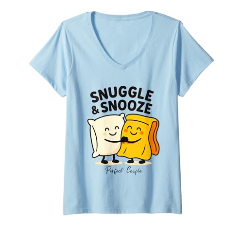 Womens Snuggle & Snooze Cute Pillow Blanket Buddies V-Neck T-Shirt