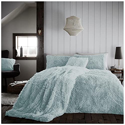 GC GAVENO CAVAILIA Teddy Fleece Hug & Snug Throw Blanket OR Snuggle Warm Cushion Cover, 100% Polyester, Duck Egg-Duvet Set, King