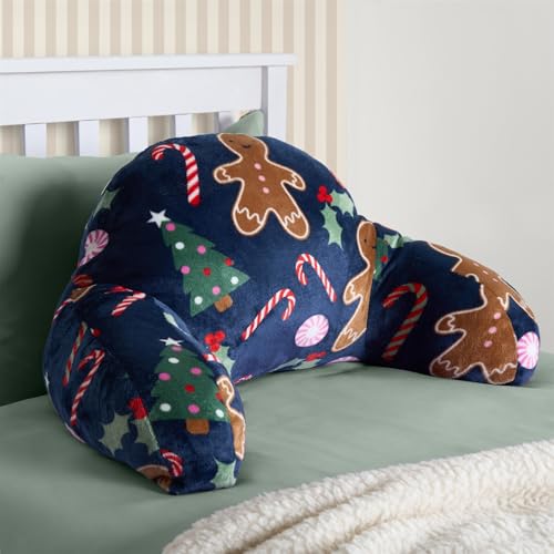 OHS Gingerbread Cuddle Cushion for Kids, Reading Pillow for Kids Soft Cosy Fleece Snuggle Cushion Backrest Pillow with Arms Gaming Cushions for Boys Girls Relaxing Comfy, Navy