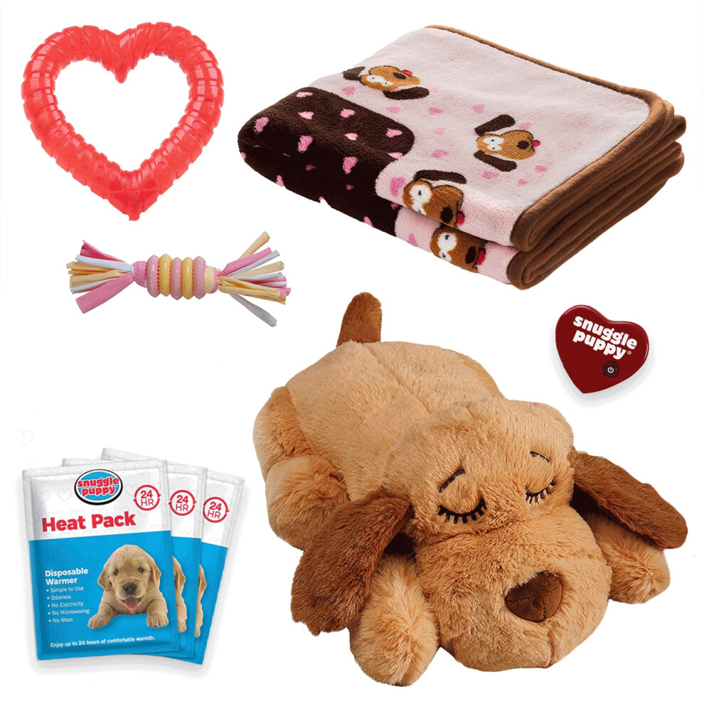 Snuggle Puppy Original Essentials Starter Kit. Heartbeat Dog Toy and Calming Aid with 3 Heat Packs, Puppy Teething Toy, Dog Chew Toy and Dog Blanket.