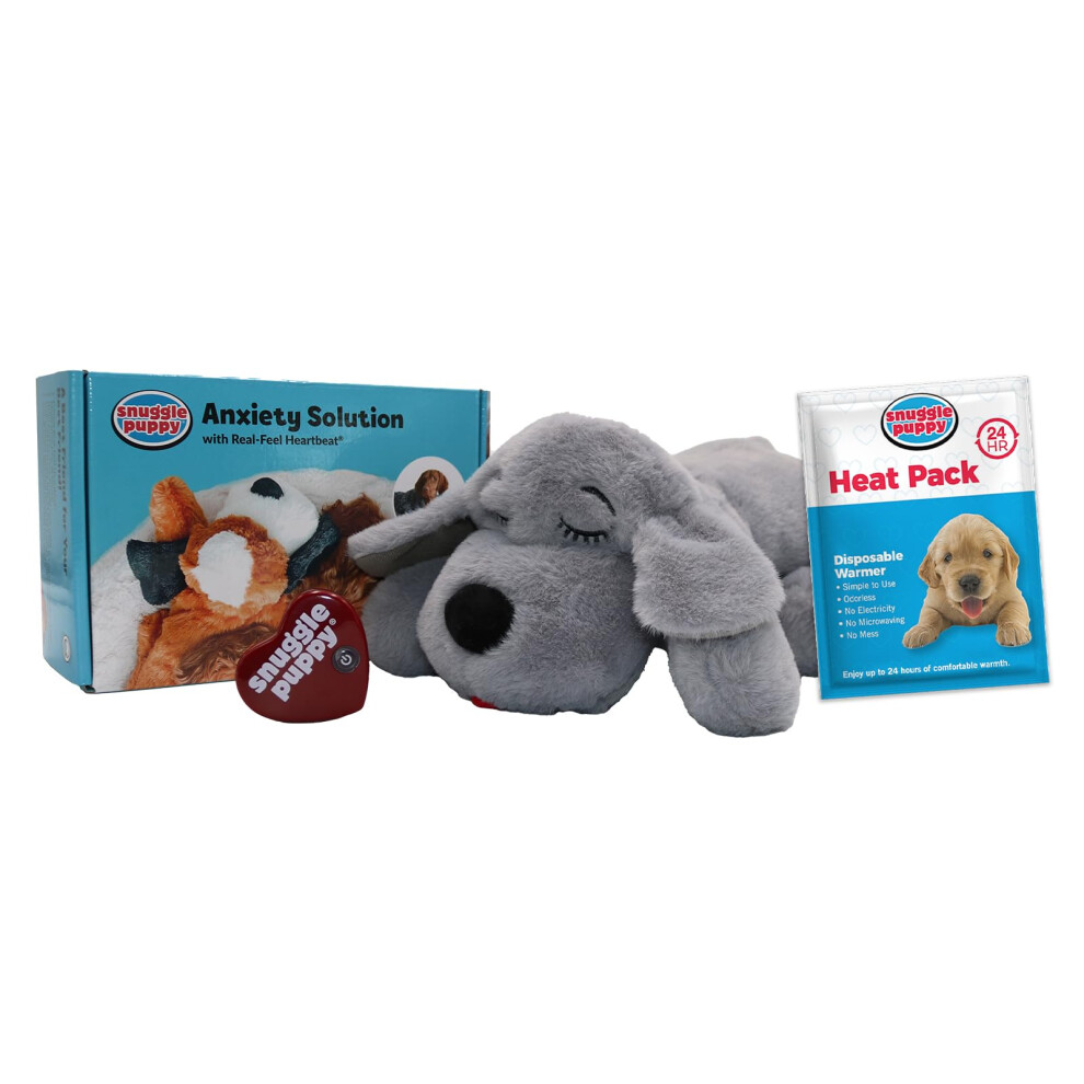 Snuggle Puppy Original Heartbeat Stuffed Toy for Dogs. Pet Anxiety Relief and Calming Aid, Comfort Toy for Behavioral Training in Gray
