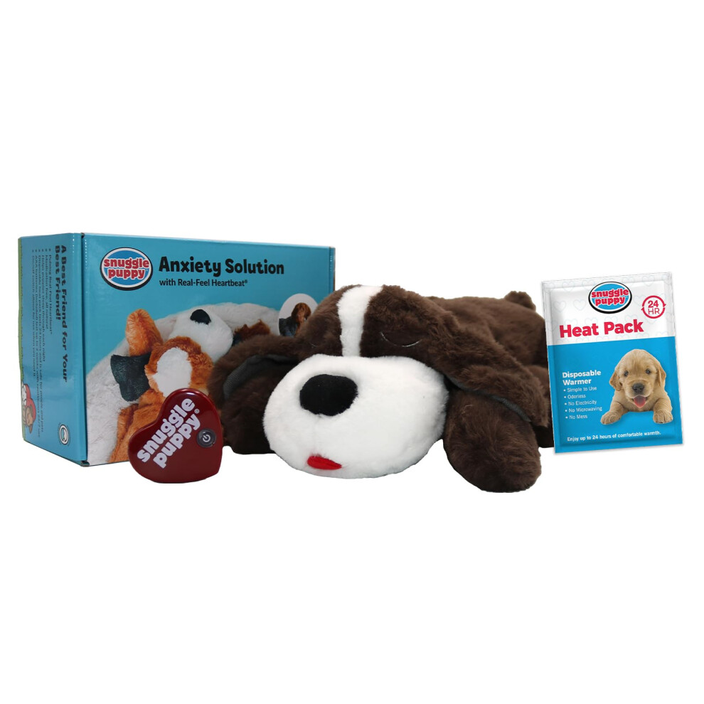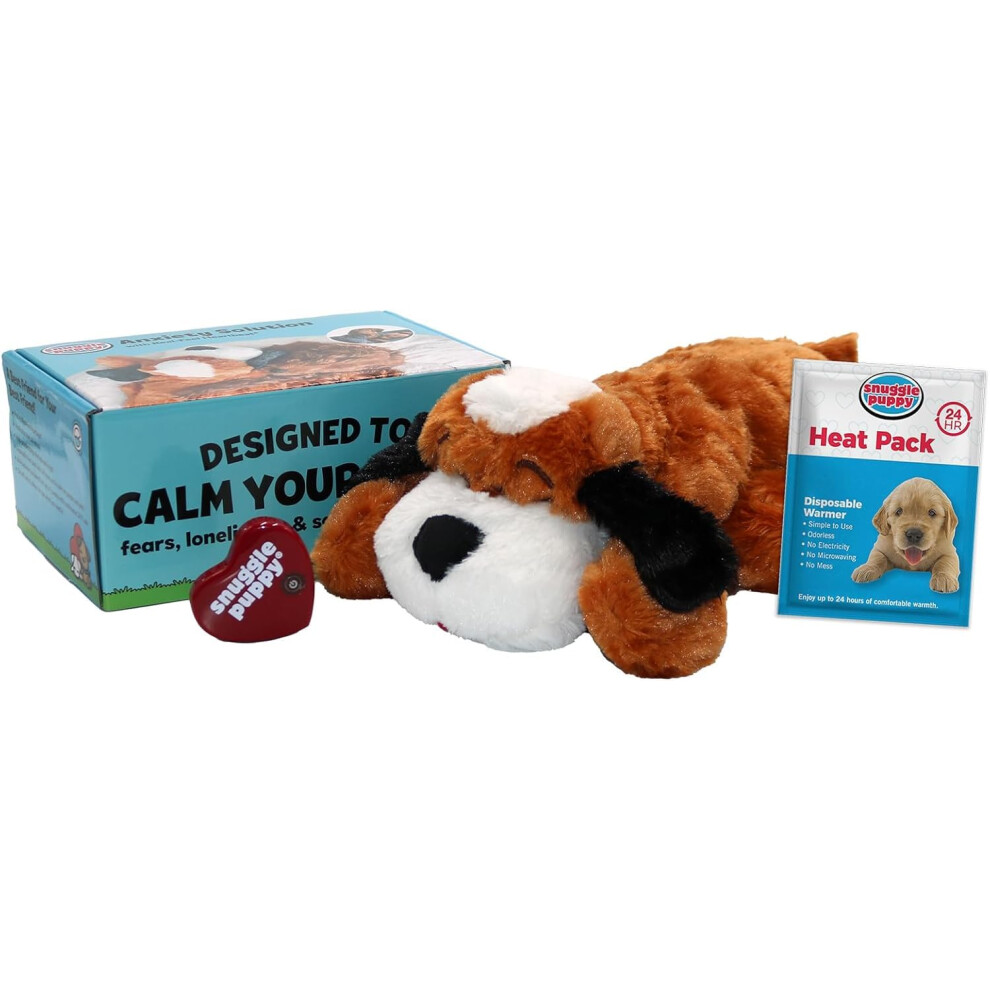 Snuggle Puppy Heartbeat Stuffed Toy for Dogs - Pet Anxiety Relief and Calming Aid - Brown and White