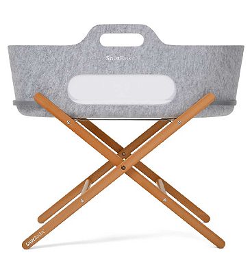 Snuz SnuzBaskit Light Grey Moses Basket & Natural Stand Set