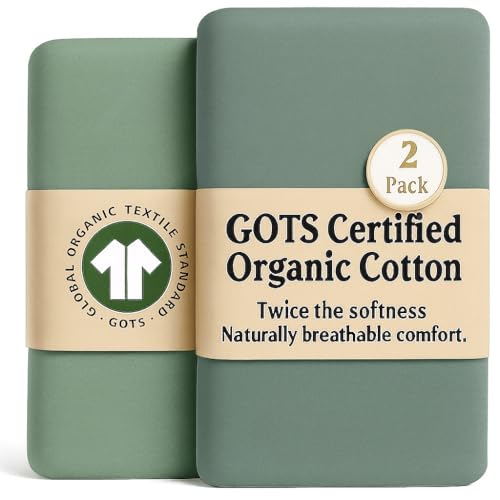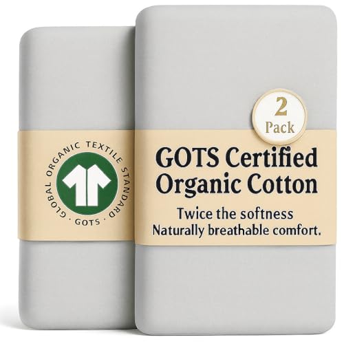 GOTS Organic SnuzPod 3 & 5 Compatible Baby Crib Sheets – (NOT-SUITABLE For SNUZPOD 4) 200gsm Soft Combed Organic Cotton, GOTS Certified – 2 Pack Fitted Sheets 44 x 80 cm