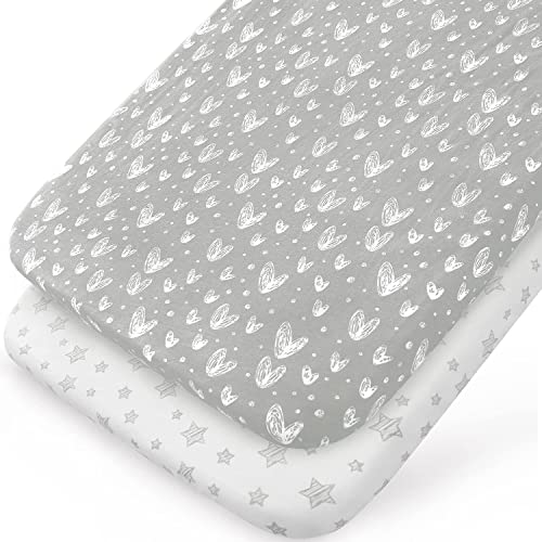 2 Pack Crib Sheets Fitted,100% Hypoallergenic Jersey Cotton, Fits for Snuzpod Bedside Cribs, Kinderkraft Baby Crib LOVI, Grey and White Print