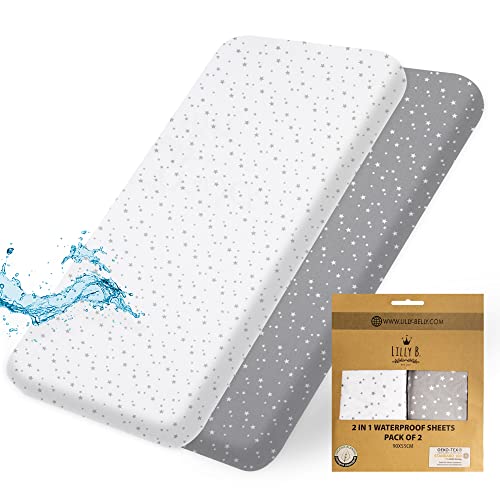 Lilly B. Next to Me Crib Sheets - Organic Cotton Pack of 2 Waterproof Cot Sheet, Use Instead of Mattress Protector, Compatible with Next to Me Crib, Snuzpod and All Bedside Cribs, up to 90x55cm