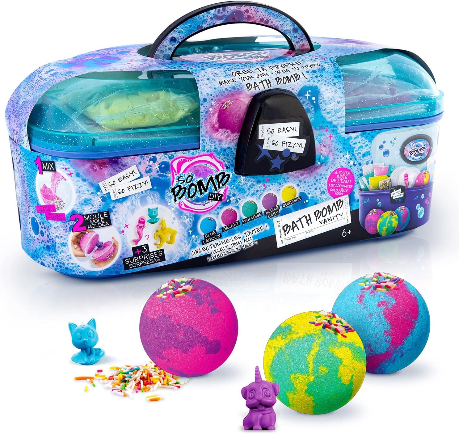Canal Toys - So Bomb - DIY Bath Bomb Vanity Case for Children - Scented Bath Bomb Making Kit with Moulds Fragrances and Crystal Salts - Portable Storage Case Creative Activity 6 Years Plus