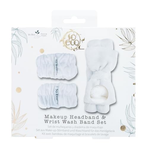 So Eco Makeup Headband & Wrist Wash Band Set – Skincare Accessories with Soft Stretch Headband & Absorbent Wristbands for Face Washing, Facials & Makeup Removal