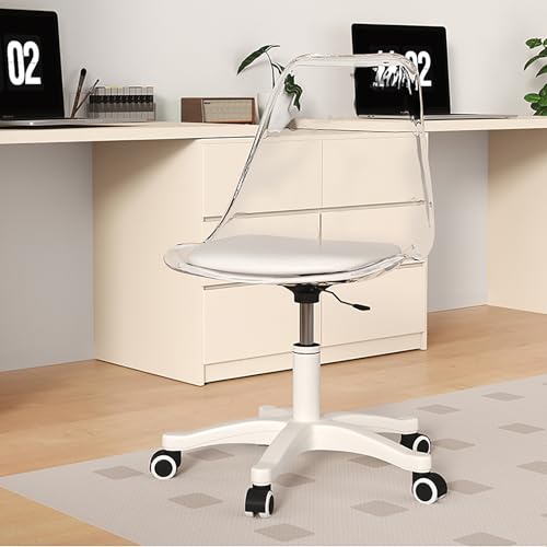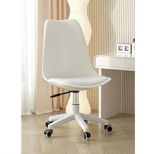 SONOSS Adjustable Rolling Swivel Vanity Rolling Chair with Wheels, Office Chair, Desk Chair for Makeup Bedroom Classroom(White)