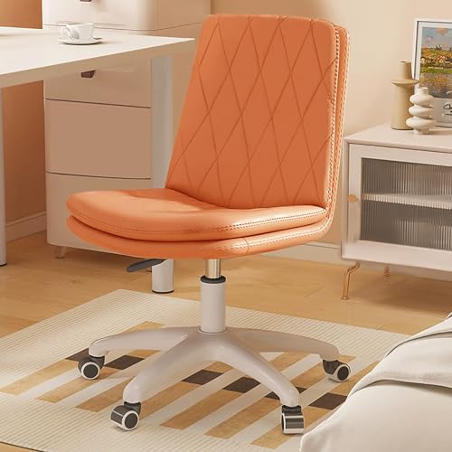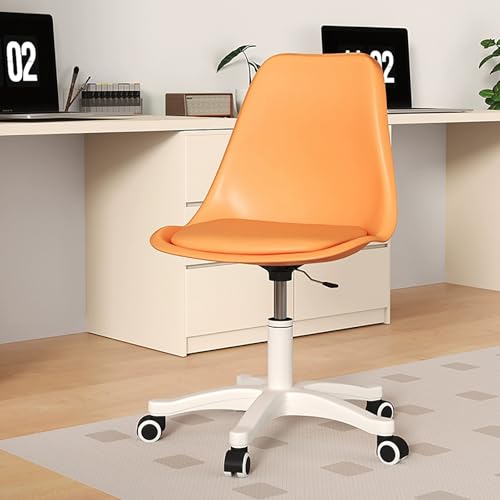 SONOSS Armless Office Task Chair, PU Leather Computer Chair with elevated and rotatable, White steel feet for Home/Office(Orange)