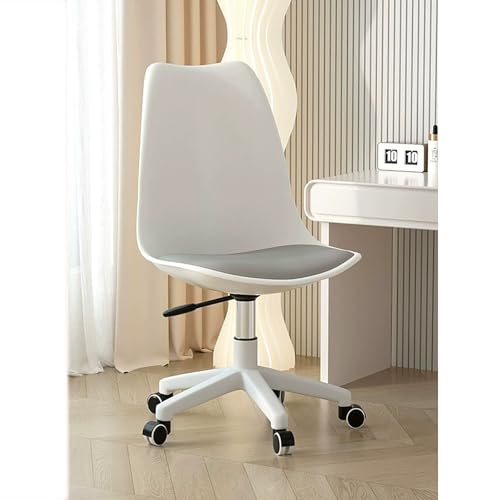 SONOSS Armless Office Task Chair, PU Leather Computer Chair with elevated and rotatable, White steel feet for Home/Office(Gray)