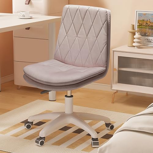 SONOSS Armless Desk Task Chair,Office Chair Technology cloth Computer Chair with elevated and rotatable, White steel feet, for Home/Office(Gray)