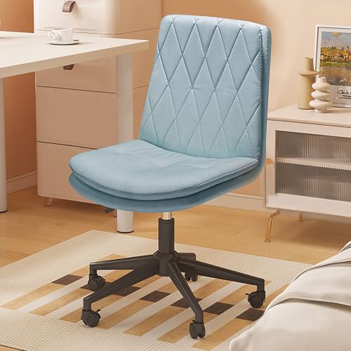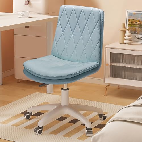 SONOSS Armless Desk Task Chair,Office Chair Technology cloth Computer Chair with elevated and rotatable, White steel feet, for Home/Office(Blue)