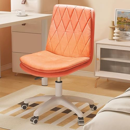SONOSS Armless Desk Task Chair,Office Chair Technology cloth Computer Chair with elevated and rotatable, White steel feet, for Home/Office(Orange)