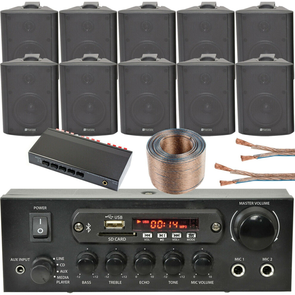 5 Zone Bluetooth Speaker Kit 10x 70W Black Wall Mount Home Bar Stereo Amplifier