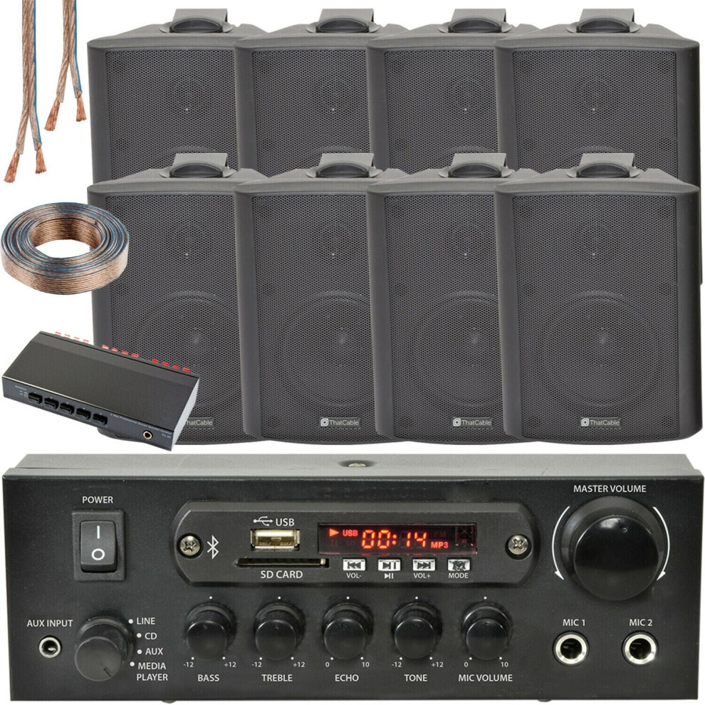 4 Zone Bluetooth Speaker Kit 8x 70W Black Wall Mounted Home Bar Stereo Amplifier