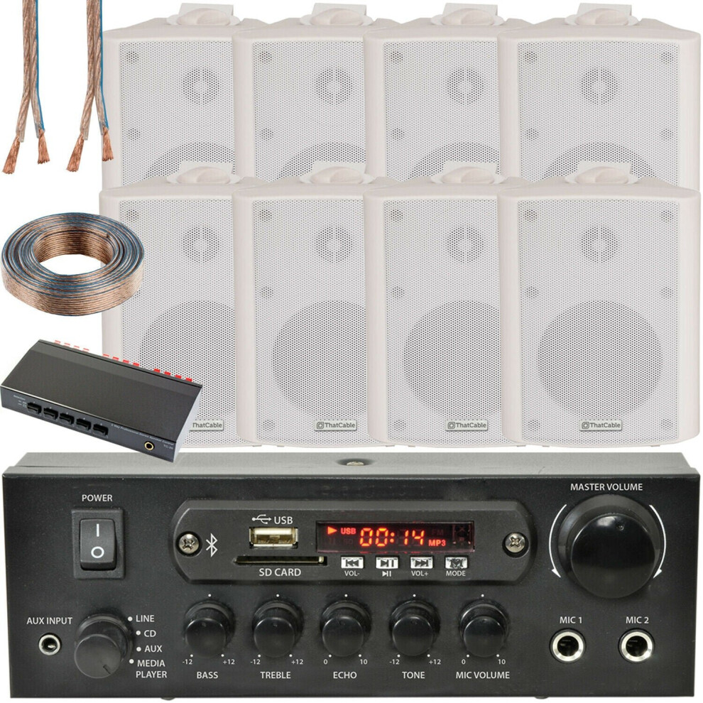 4 Zone Bluetooth Speaker Kit 8x 70W White Wall Mounted Home Bar Stereo Amplifier