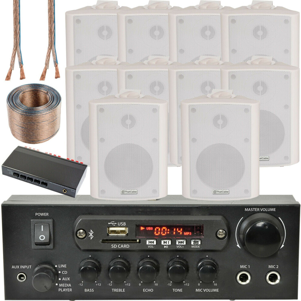 5 Zone Bluetooth Speaker Kit 10x 70W White Wall Mount Home Bar Stereo Amplifier