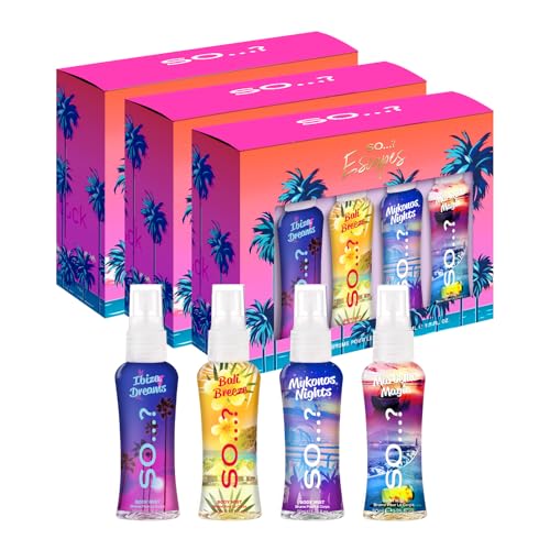 So…? Escapes Womens Gift Set, with Ibiza Dream, Bali Breeze, Mykonos Nights & Marbella Magic, Fragrance Spray Set (4 x 50ml) Pack of 3