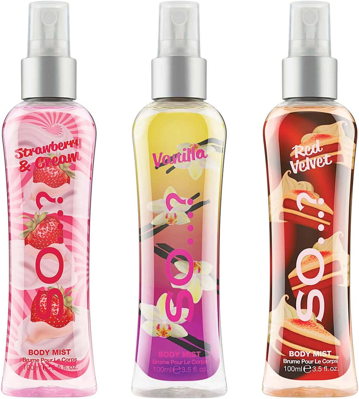 Body Mist by So…? Womens Vanilla, Red Velvet, Strawberries & Cream Body Spray