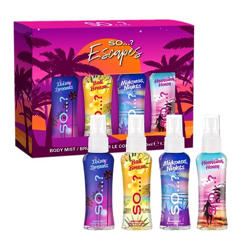 So…? Escapes Womens Gift Set, with Ibiza Dream, Bali Breeze, Mykonos Nights & Hawaiian Honey, Fragrance Spray Set (4 x 50ml)