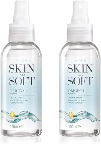 Avon Skin So Soft Dry Oil Spray 150ml Duo, Locks in Moisture, Formulated with Jojoba Oil and Vitamin E, Quick Dry Formula, Cruelty Free