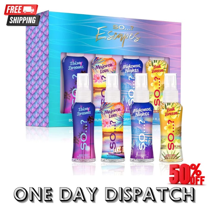 So…? Escapes Grande Womens Gift Set with Ibiza Dreams, Bali Breeze, Mykonos Nights, Santorini, Seychelle Sands, Hawaiian Honey, Body Mist Fragrance Spray Set (6 x 50ml.)§