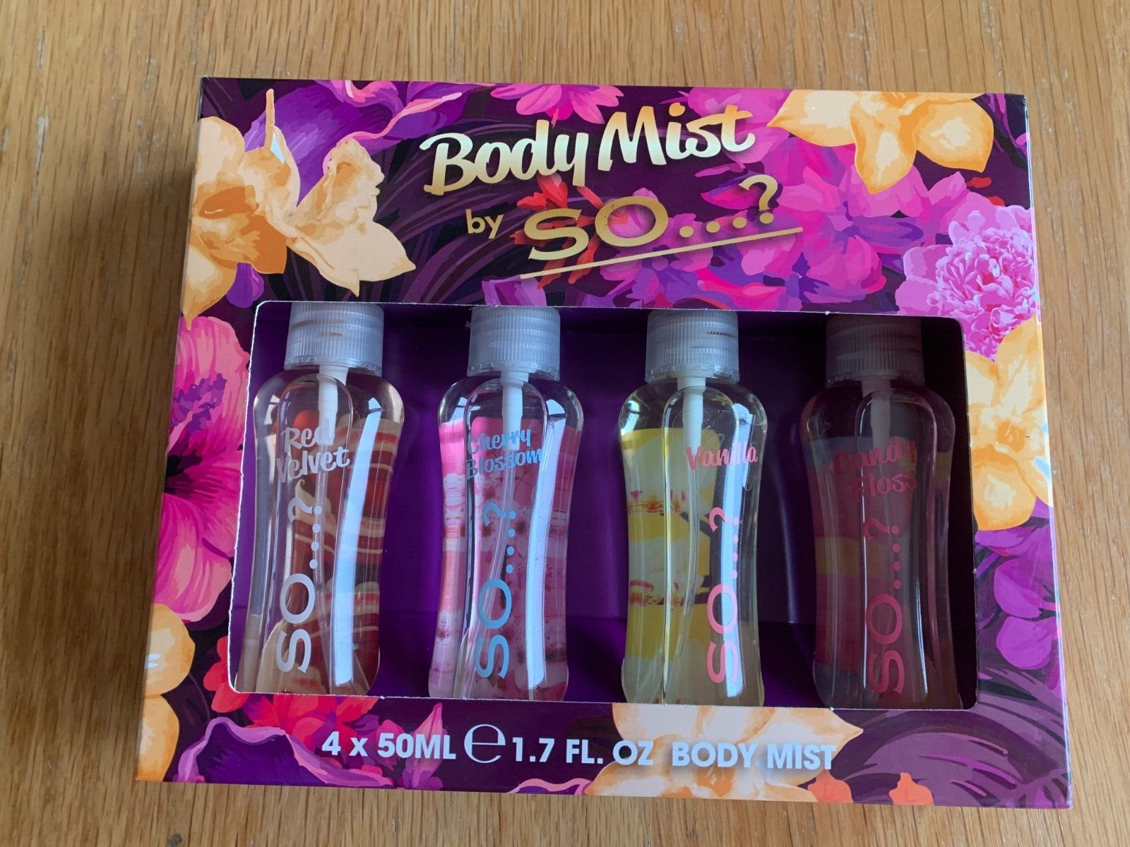 So...? Ladies Body Mist Gift Set 4 x 50ml Truffle White Blossom Vanilla Candy