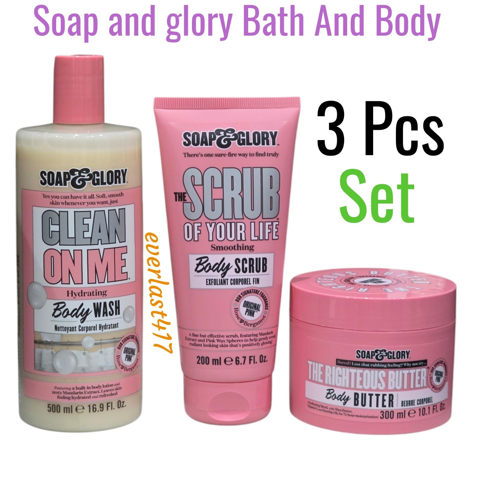 Soap & Glory Body Wash 500ml, Body Scrub 200ml,Body Butter 300ml,Full Size,3 Pcs