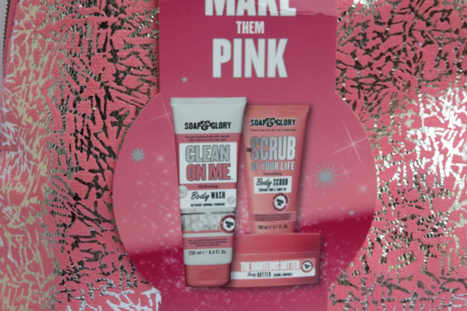 Soap & Glory ❤️ Make Them Pink 3-Pc Body Wash. Scrub. Butter ❤️ Gift Set & Bag