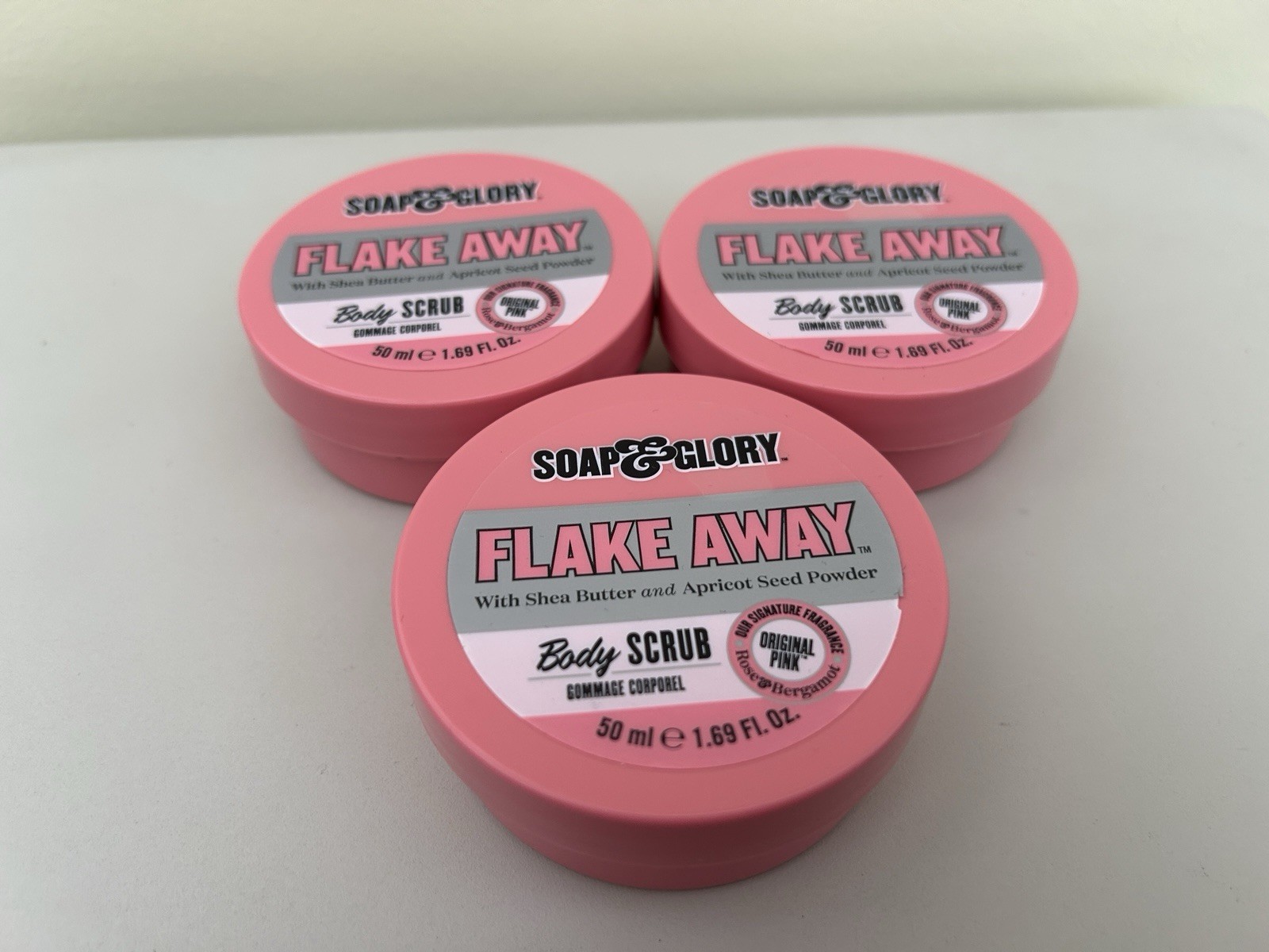 Soap & Glory Flake Away Body Scrub 3 x 50ml - Shea Butter & Apricot Seed Powder