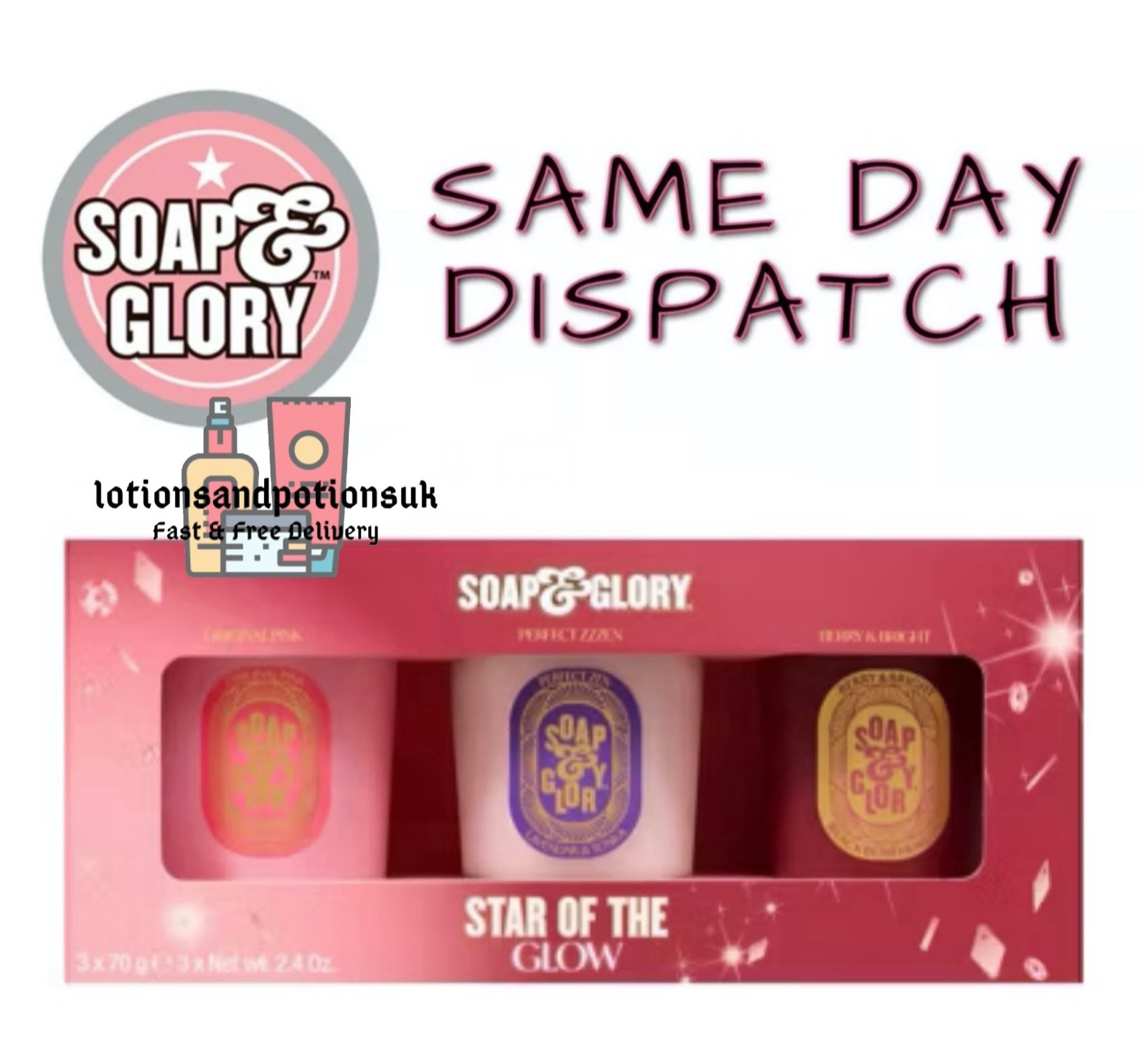 2 X Soap & and Glory Star Of The Glow Candle Trio Ladies Christmas Gift Set