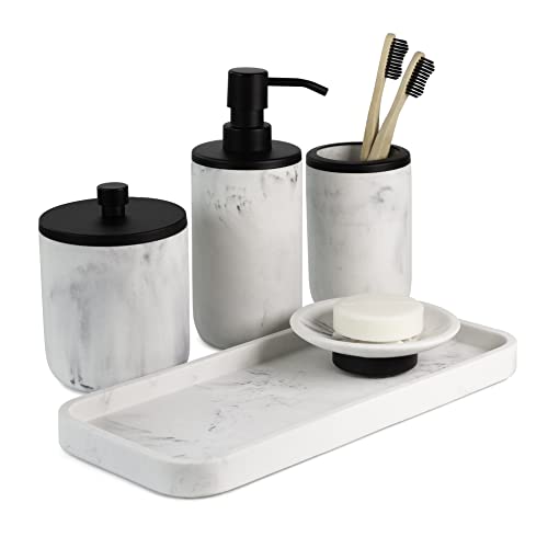 Bathroom Soap Dispenser Set - Bathroom Toothbrush Holder Set, Marble Bathroom Accessories, Matte Black Bathroom Accessories Set, Black Bathroom Decor, Modern Bathroom Accessories Set