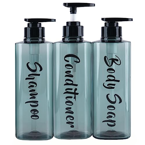 OLLIES Shampoo and Conditioner Dispenser, Shower Soap Dispenser for Bathroom-Set of 3 with Permanent Stylish Label-17oz, 500ml Refillable Shampoo and Conditioner Bottles Green