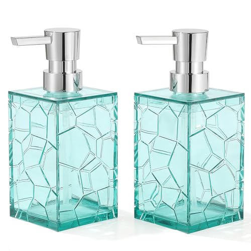 YAUKPH 2 Pack Clear Teal Blue Rust Proof Soap Dispenser, Acrylic Plastic Hand Soap Lotion Dispenser Set for Bathroom&Kitchen
