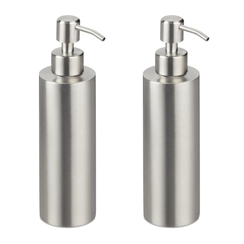 Relaxdays Soap Dispenser, Set of 2, 300 ml, Stainless Steel, Refillable, for Liquids, Bathroom & Kitchen, Pump, Silver