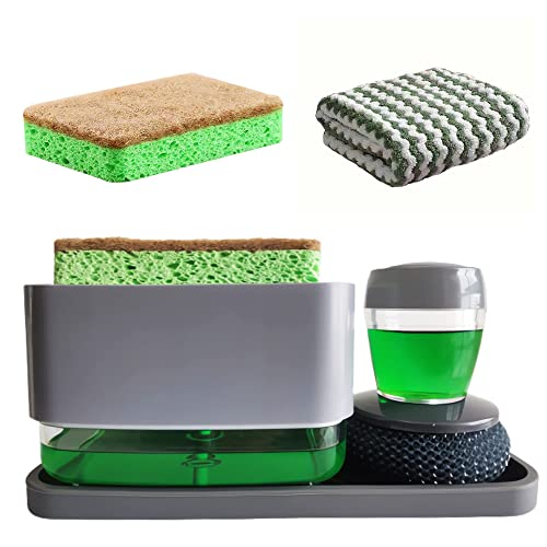 TGIFGO 4-in-1 Kitchen Dish Soap Dispenser Upgrade Set with Sponge Holder,Kitchenware Soap Dispenser Brush,Silicone Tray,Dishwashing Sponge,Kitchen Sink Countertop Organizer Washing Gadget