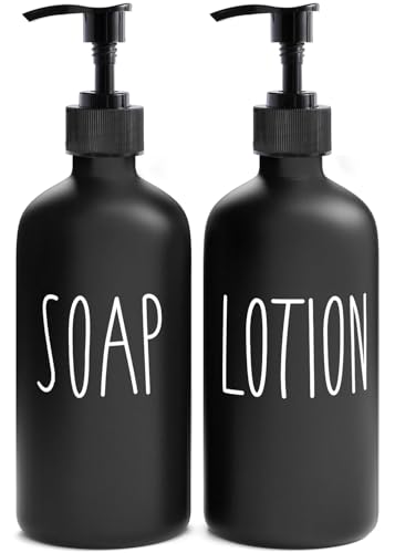 MOMEEMO Matte Black Soap Dispenser Bathroom Set, Contains Hand Soap Dispenser and Lotion Dispenser. Bathroom Soap Dispenser Set Suitable for Bathroom Decor Farmhouse Style. (Black)