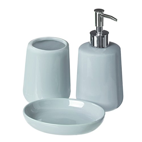 Premier Housewares Bathroom Sets Accessories Pale Blue Soap Dispenser Set Bathroom Accessory Set Set of 3 Bathroom Sets 17.3 X 8.3 X 8.3