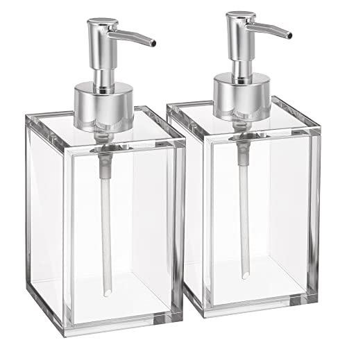 2 Pack White Clear Liquid Soap Dispenser Bathroom, Acrylic Plastic Hand Soap Lotion Dispenser Set for Bathroom&Kitchen