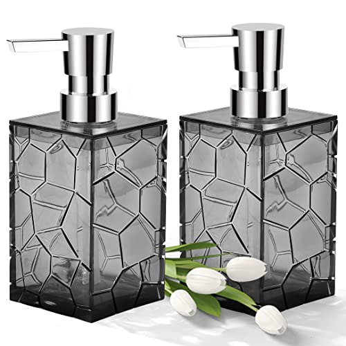 2 Pack Clear Gray Rust Proof Soap Dispenser, Acrylic Plastic Hand Soap Lotion Dispenser Set for Bathroom&Kitchen