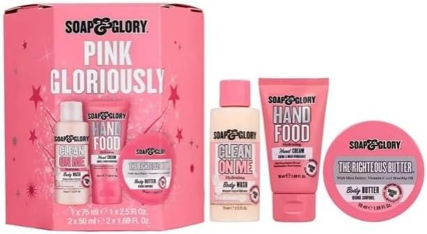 Soap & Glory Pink Gloriously 3 Piece Gift Set, 1 x 75 ml Hand Food, 1 x 50 ml H